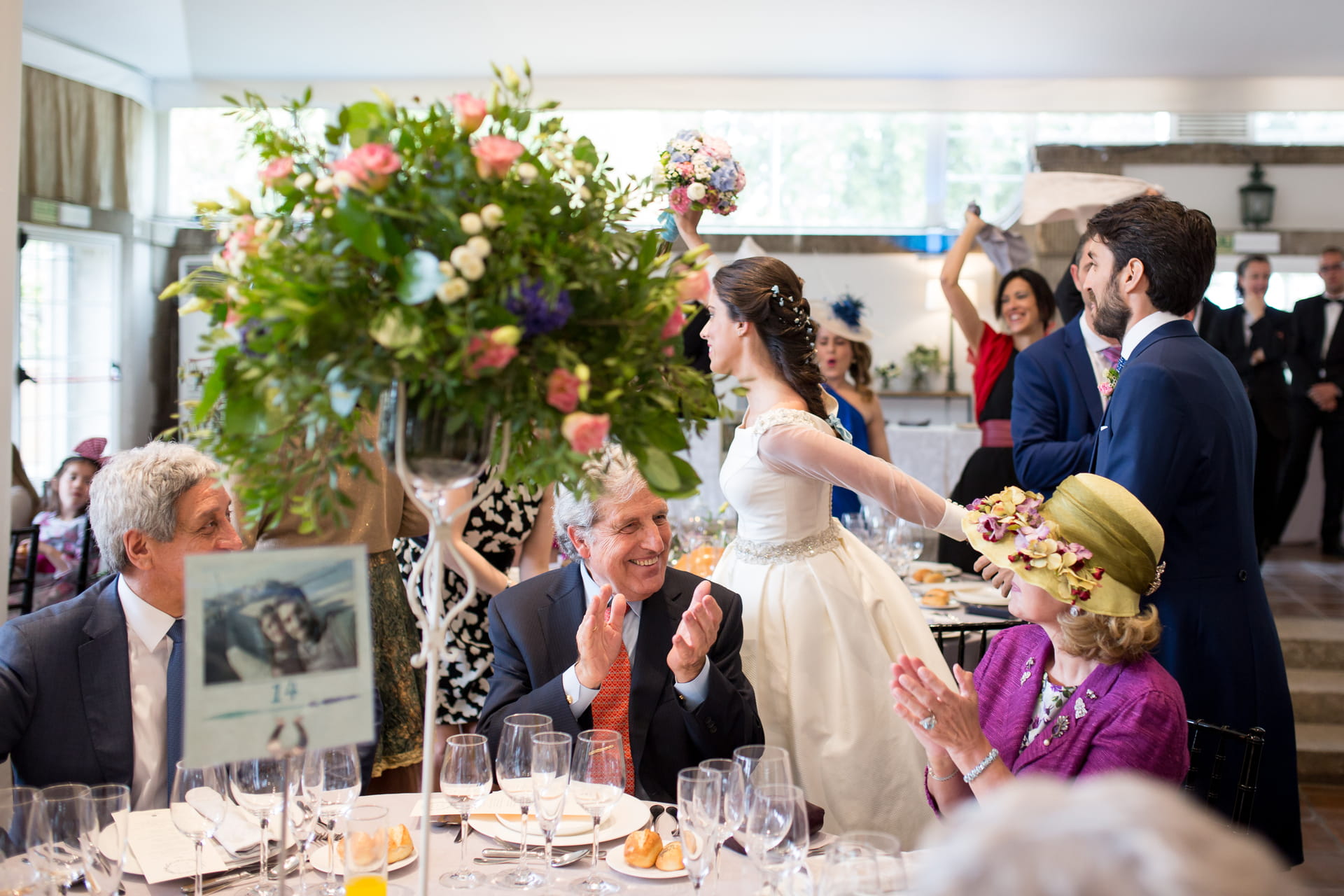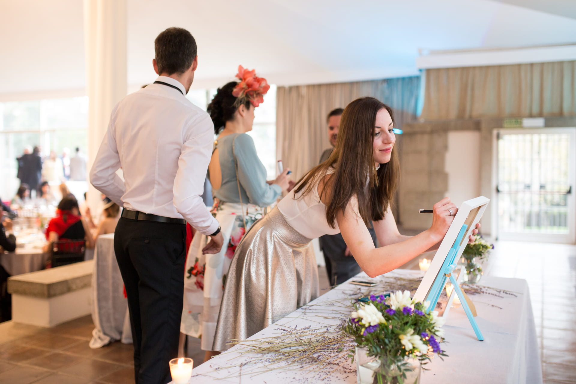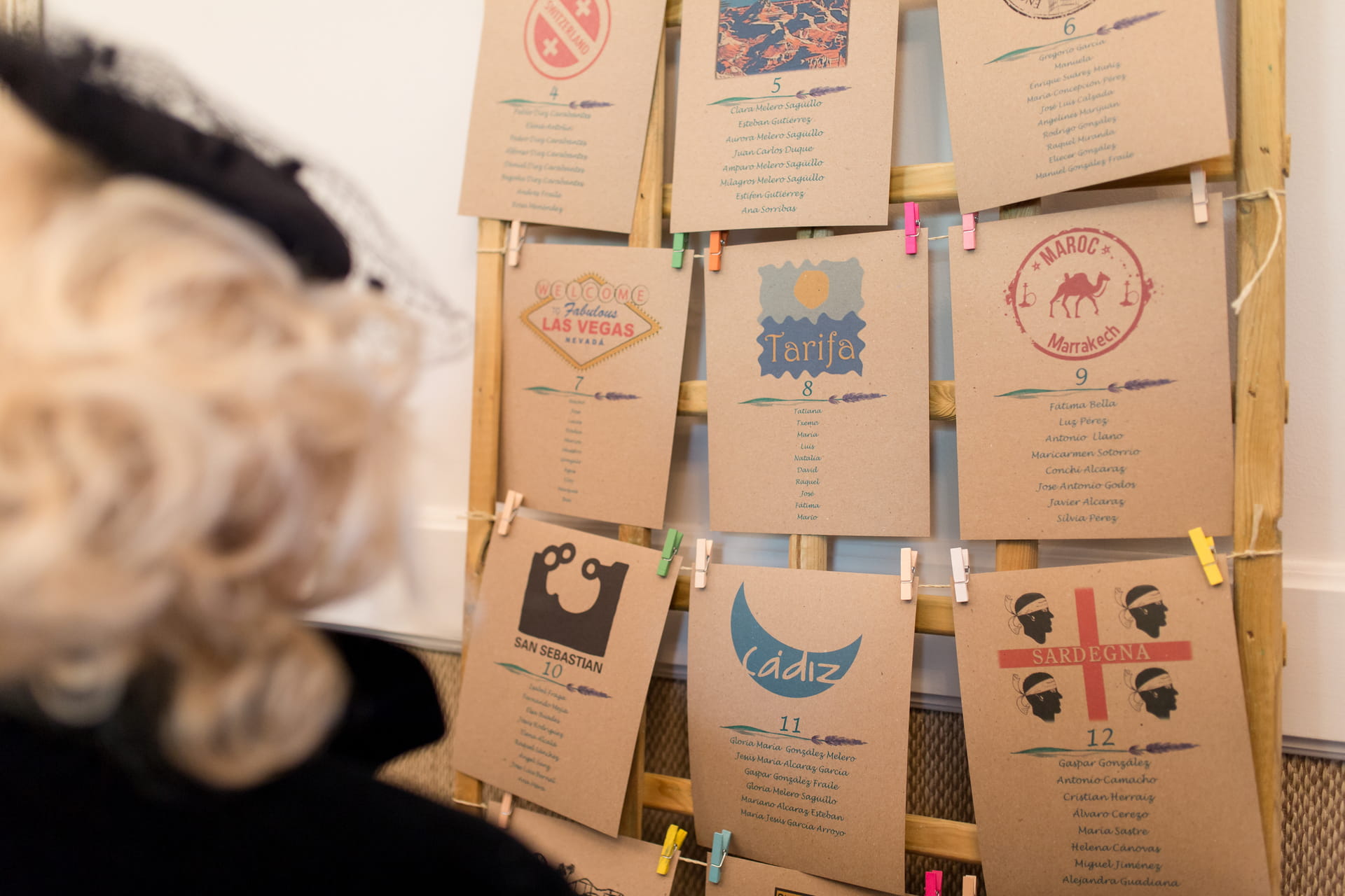 El hilo conductor fue su pasión por viajar: las mesas estaban organizadas por ciudades de sus aventuras juntos, convirtiendo el seating en un recorrido por sus recuerdos. Hubo photocall, juegos con deseos para los novios y pequeñas sorpresas pensadas para que todos participaran. Una boda divertida, muy personal y llena de guiños que la hicieron única.
